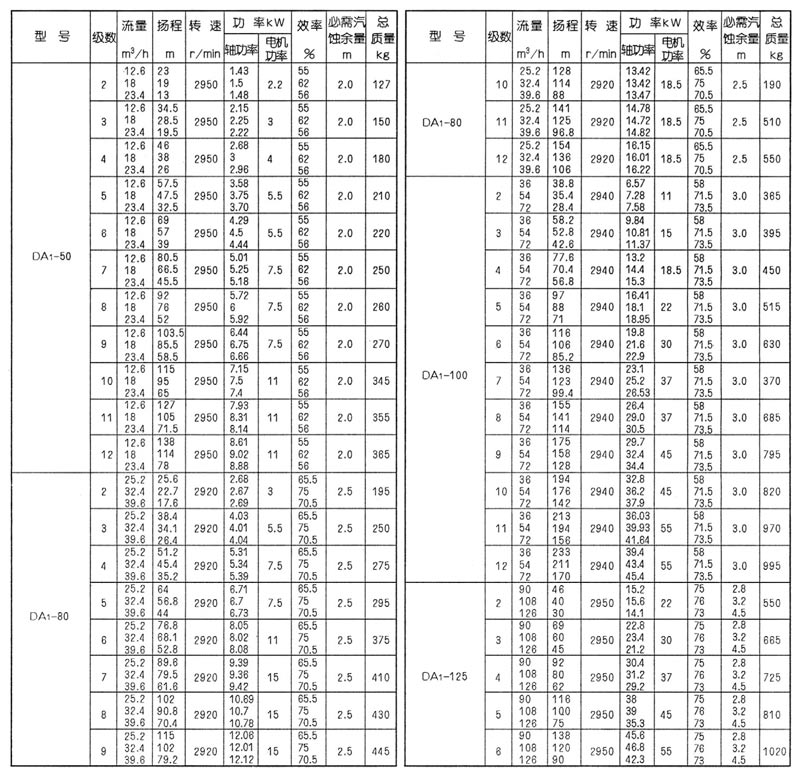 型號意義:如DA1-100X5。100-泵進、出口直徑(mm),5-泵(bèng)的(de)級數。
