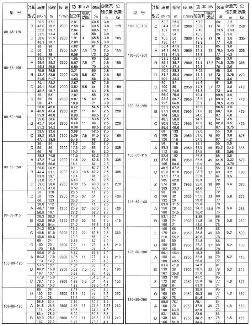 泵型號表示的前(qián)兩項,代表進、出口的直徑。如IS80-65-160,泵的進口直徑為80mm,口直徑為65mm。