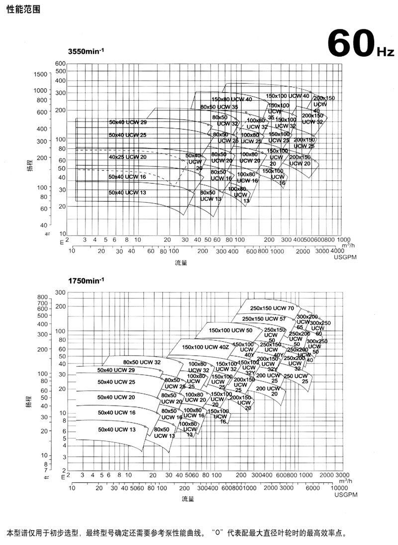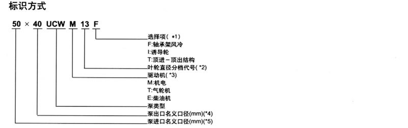 (*4)當泵進口和出口(kǒu)相時,進出口尺寸代號可不必重複寫,例如(rú),200 UCWM 20可代表200 X200 UCWM 20.
