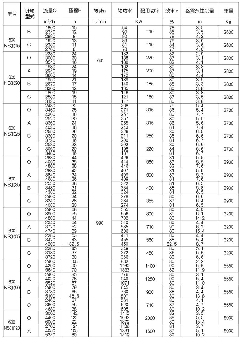 NS(Ⅱ)型泵具有很高的效率,在較寬的流量範圍內(nèi)具有很高的運行效率,可以降低運行費用和選用功率較小的電機,是節能的高效率(lǜ)中開泵。